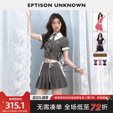 EPTISON套装女2025秋新款miu系穿搭格纹Polo领上衣A字短裙两件套