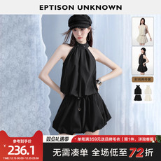 EPTISON时尚套装女2025夏季新款挂脖上衣白色短裙辣妹气质两件套