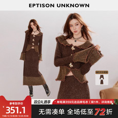 EPTISON千金风套装女2025冬新款短款毛衣开衫A字半身裙时尚两件套