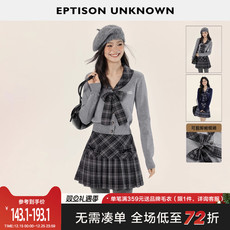 EPTISON套装女2025冬季新款短款毛衣外套格纹百褶裙学院风两件套