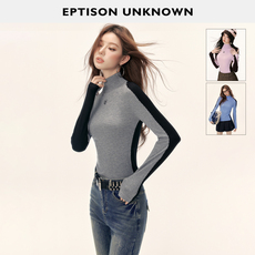 【69/件】EPTISON针织打底衫女2025冬新款修身高级感复古撞色上衣