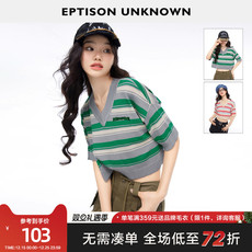EPTISON短袖针织衫2025夏季新款美式复古V领条纹短款休闲宽松上衣