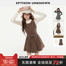 EPTISON套装女2025冬季穿搭修身针织打底衫复古格纹连衣裙两件套