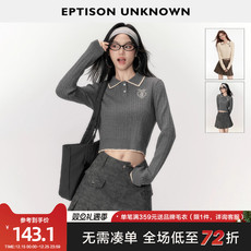 EPTISON针织衫女2025年秋季新款复古学院风Polo领假两件短款毛衣