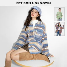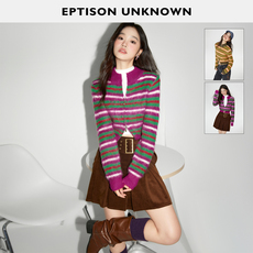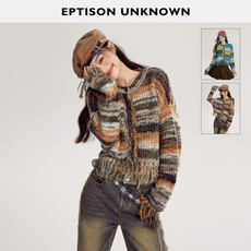 【69/件】EPTISON毛衣女2025秋季新款短款条纹慵懒风复古针织开衫