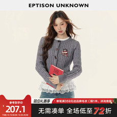EPTISON针织开衫女2025秋季新款短款复古甜美小个子圆领蕾丝上衣