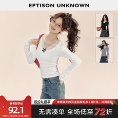 EPTISON针织打底衫女2025冬新款修身少女风V领蕾丝拼接轻熟短上衣