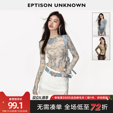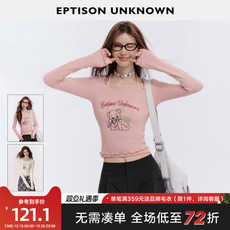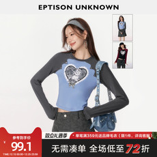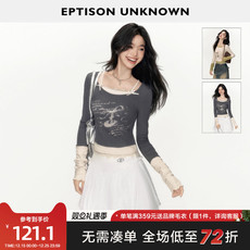 EPTISON长袖T恤女2025秋季新款修身独特印花辣妹假两件设计小上衣