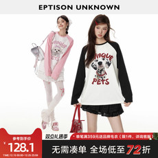 EPTISON长袖T恤女2025秋季新款可爱小狗印花插肩袖宽松纯棉上衣