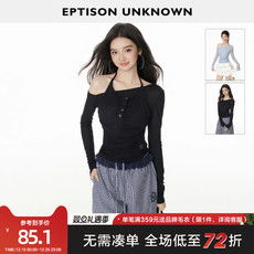 EPTISON长袖T恤女2025夏季新款修身假两件美式辣妹风短款斜肩上衣