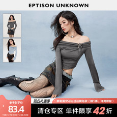 EPTISON长袖T恤女2025秋季新款修身短款设计感一字领辣妹时尚上衣