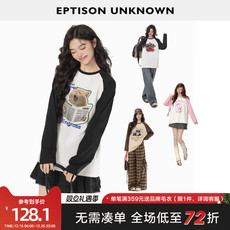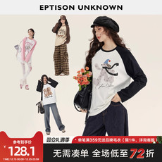 【49/件】EPTISON长袖T恤女2025秋新款宽松卫衣撞色印花休闲上衣