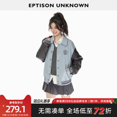 EPTISON外套女2025秋季新款美式复古撞色拼接PU皮袖休闲夹克上衣
